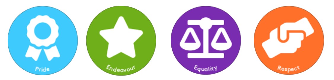 Our core values are Pride, Endeavour, Equality and Respect, and we encourage all members of our school community to show these values through their actions.